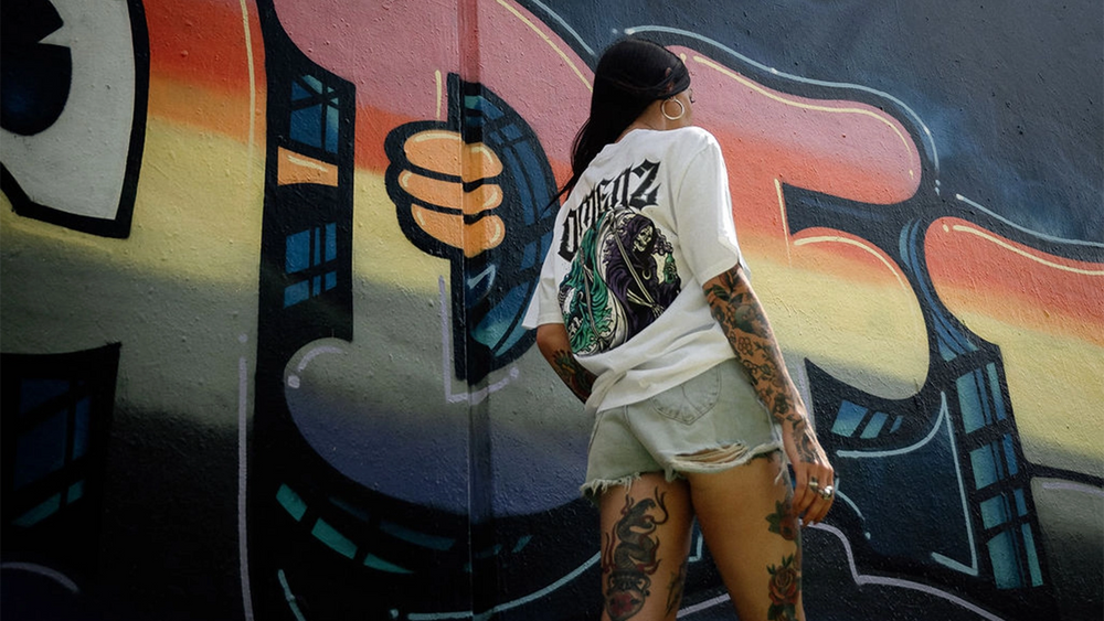 Reapers, roses, skulls and engines. Design styles ripped from the 90's old school attitude and revived with new era energy.