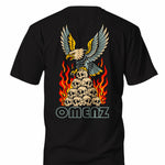 True to size with a classic cut and regular fit. 220GSM premium cotton black tee. Custom designed and screen printed in Australia.