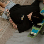 OVERSIZED = roomier, boxier body with dropped shoulders, wider sleeves and heavier cotton.