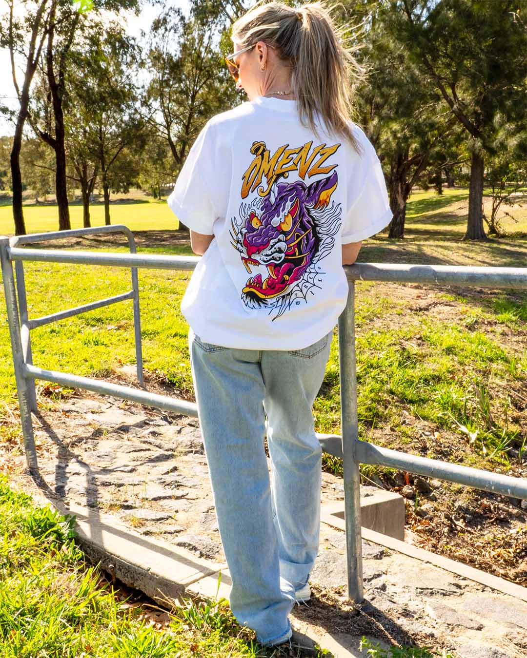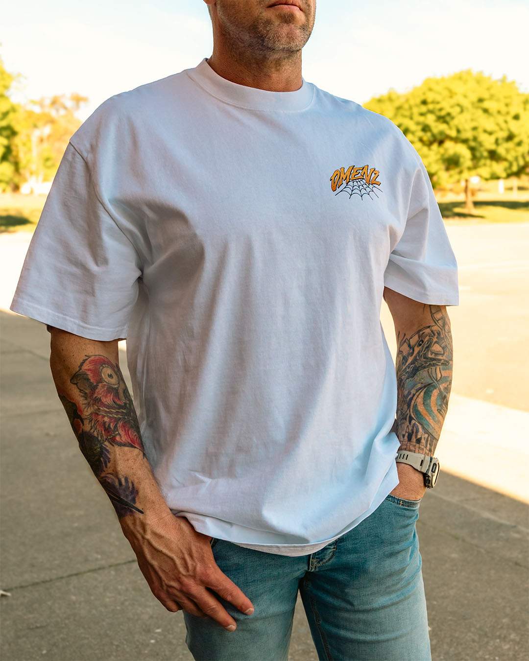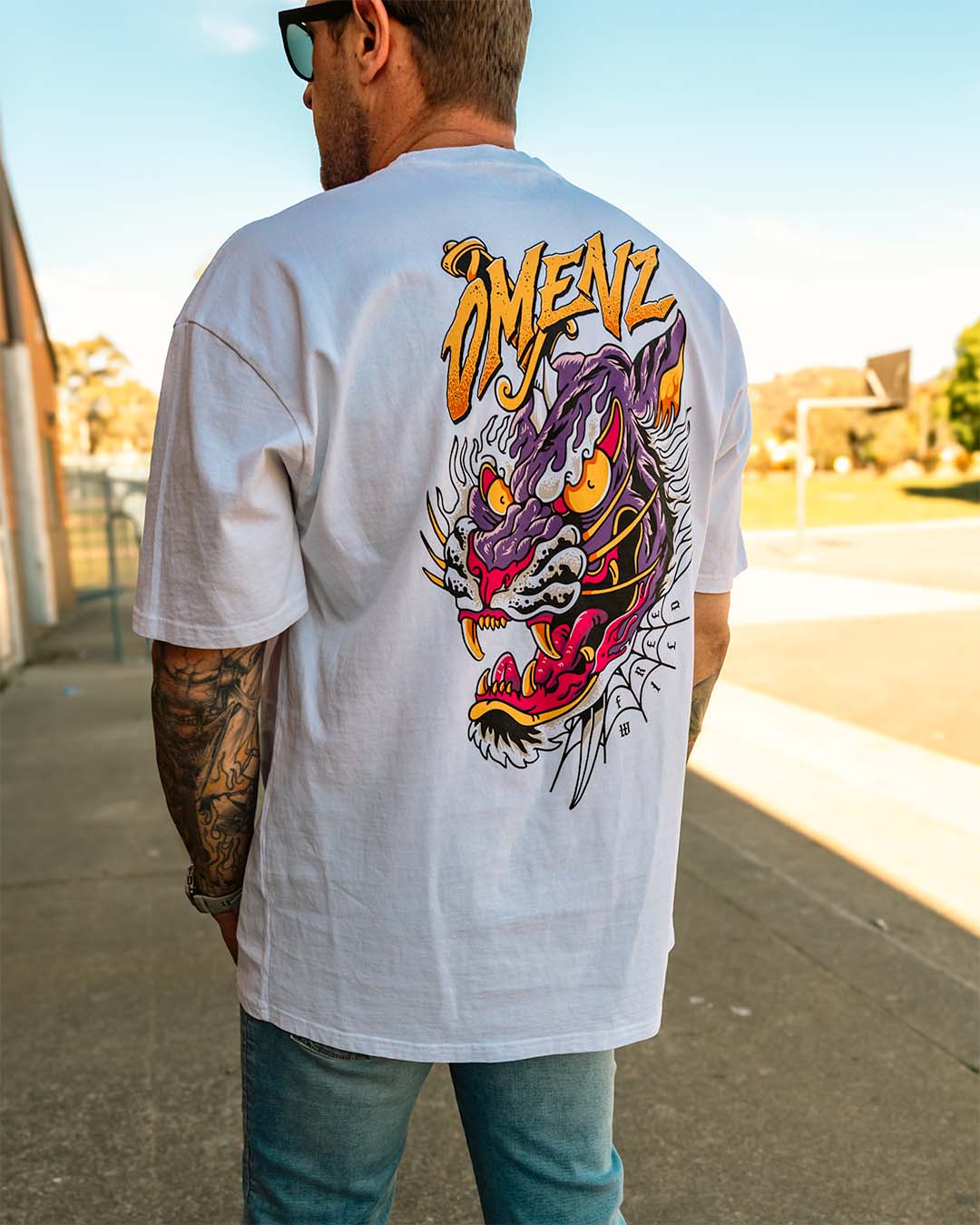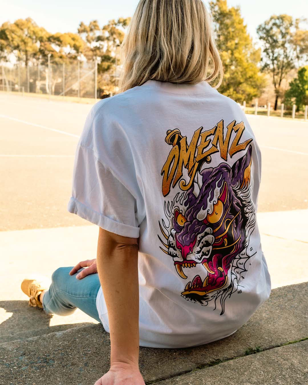 True to size with an oversized cut. Designed to wear comfortably in your regular size. 240GSM premium cotton. Oversized fit with dropped shoulders. Custom drawn. Designed and screen printed in Australia.